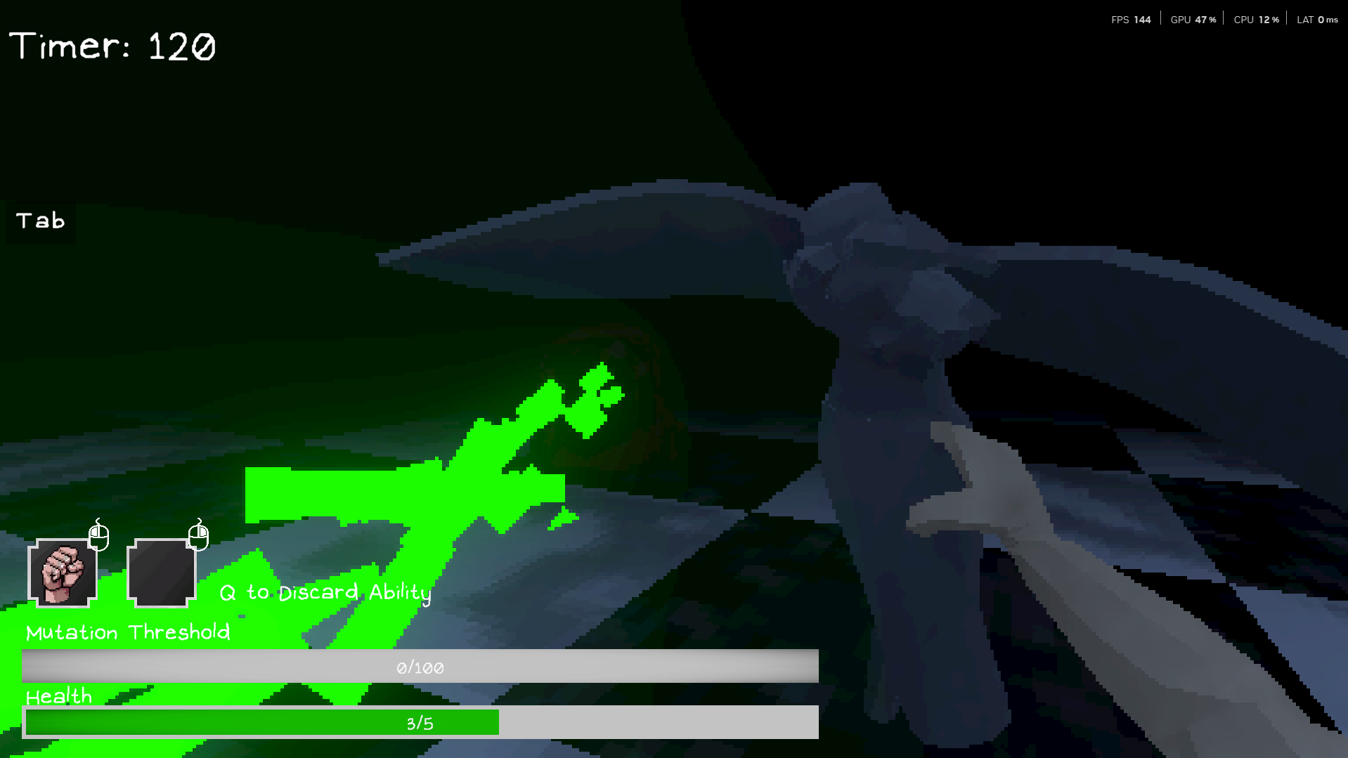 As you defeat enemies, you fill your mutation bar. If you die after making enough progress, your character mutates, gaining new stats that help you survive longer in the next run.